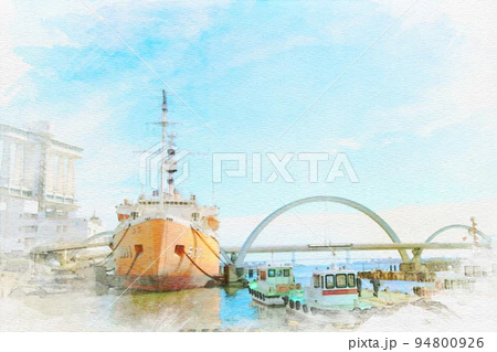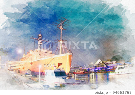 「愛知県名古屋市港区の南極観測船ふじ」 #水彩画 #オリジナル #クリエイターさんと繋がりたい 水彩画を使いたい方はこちらからどうぞ✨↓ ※売上の10%が難民・飢餓のこども達の命を救うために寄付されます✨ pixta.jp/f/Hiromi0525/p…