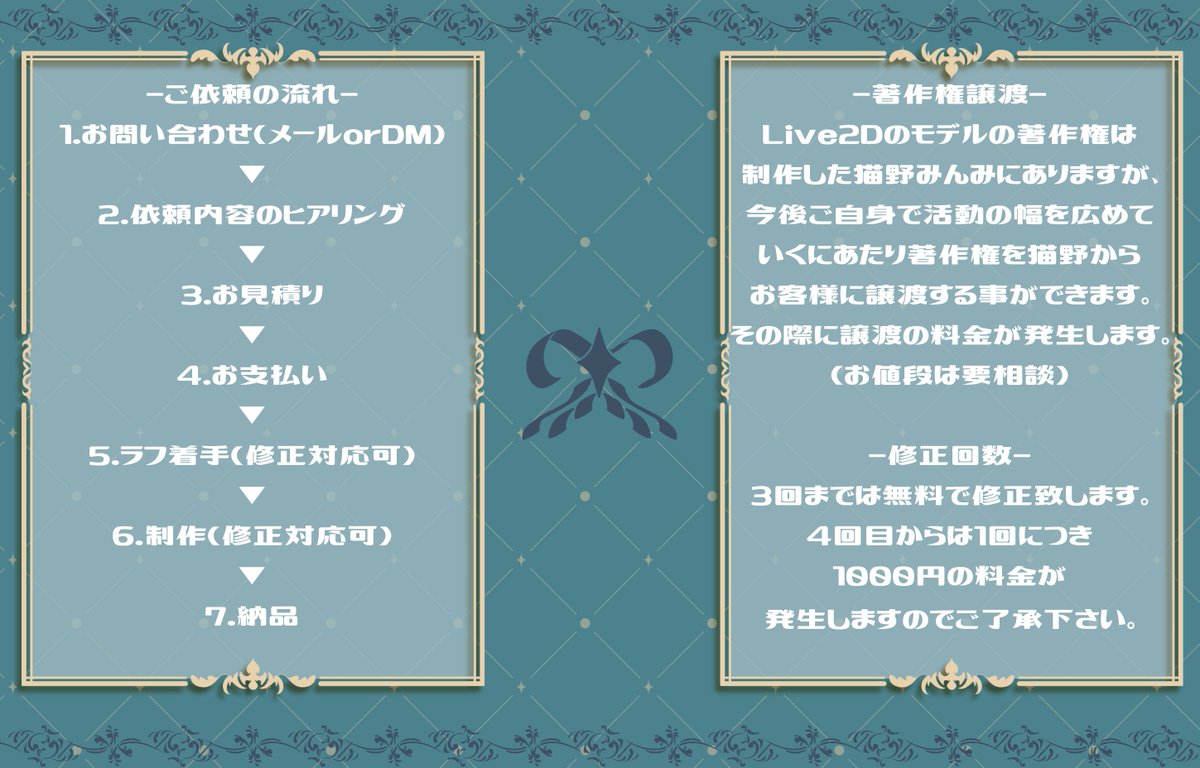 猫野みんみです 絵とLive2Dのモデリングができます メール▸hosinagi0701☆gmail. com(☆=@) Skeb▸skeb.jp/@MinMi_0701 Live2D制作や話し合いが必須なご依頼はメールかDMへ、それ以外のご依頼はSkebまでお問合せください!ご依頼、おまちしております!