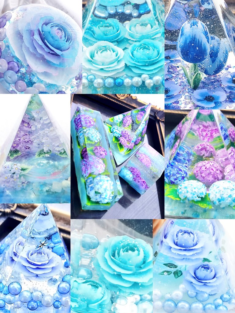 レジンに描いたレジンアートペイントを見ていただけたら嬉しいです💕 レジンの透明な性質を生かしてアクリル絵の具で描いたアートです😊 minne☆ minne.com/@na-mi-si-khd Thanks❤@Lupopo_cafe 様