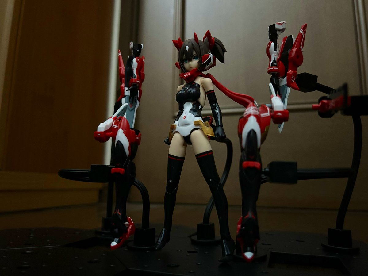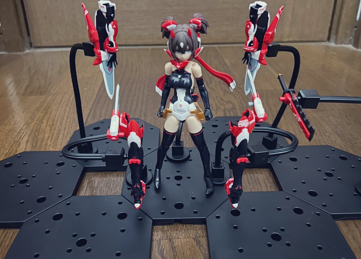 一昔前にTwitterで話題になった百均のディスプレイスタンド、多々買えばこういうのもできるのでオススメ #メガミデバイス