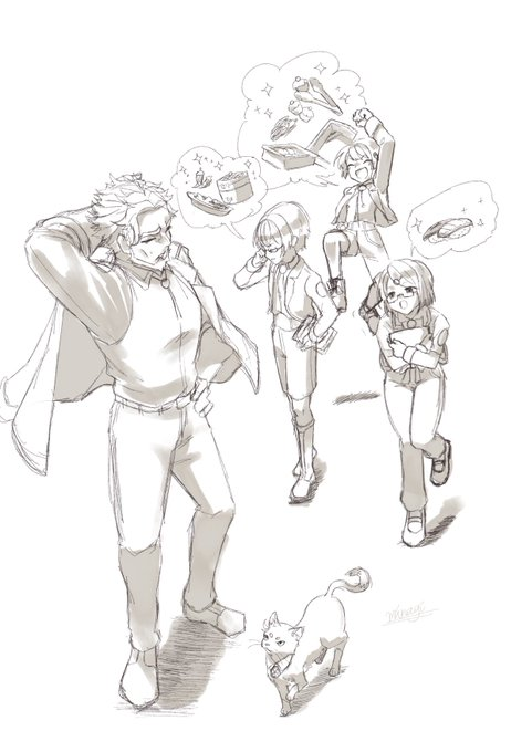 24 56 らくがき:たっちゃさんですが、よく考えると、マフラーの下にネクタイの結び目が有るってことは、想像以上にネクタイをルーズに着てるってことだよね……? ってことに気づいた時、ほぁぁぁぁあああああってなった 21/10/10 23:56