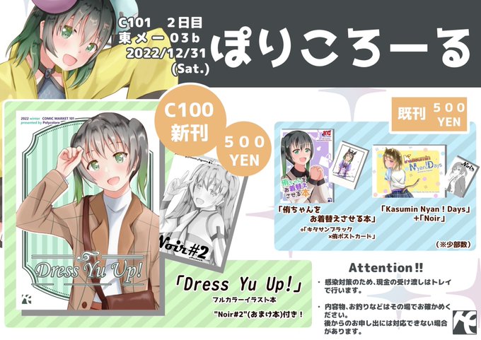 3 8 コミックマーケット101 2日目12/31(土) 東4 【メー03b】ぽりころーるのお品書きです! ニジガク侑ちゃんイラスト本です! 是非遊びに来てくれると嬉しいです #C101お品書き #C101 22/12/29 13:41