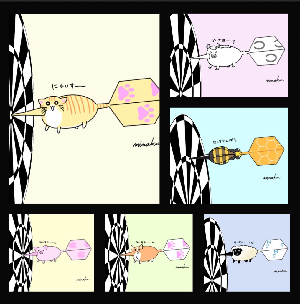 あにまるだーつシリーズ🐾 『にゃいすー』 みるきーからーバージョン 前のイラストよりもちっと感と自己主張を増やして、色味は少し抑えてみました🐱🐾 #イラスト #あにまるだーつ twitter.com/minakasweet/st…