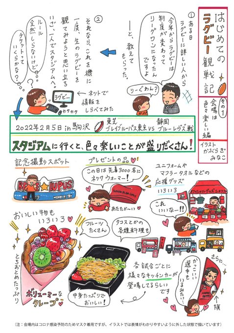 【初めてのラグビー観戦ルポ】 先日初めてラグビーを観戦したのでルポで描いてみました。会場は試合以外にも美味しい物があったり、グッズの販売やイベントなど、ラグビー通はもちろんのこと、不慣れ人でも十分楽しめる要素が多かったように思います。【続く⬇️】#ラグビー #東芝ブレイブルーパス東京
