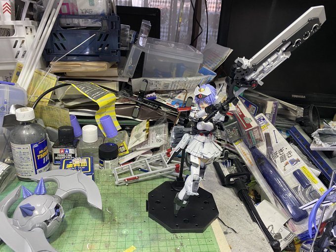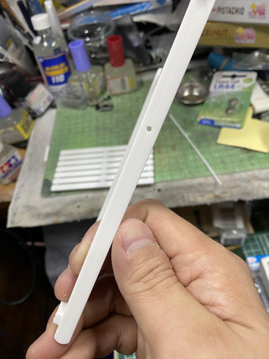 #山田化学 さんのハンガーラックMの外枠の下から10cmの所に2mm径の穴を開けて2mmの丸プラ棒を通すと長尺のCHARMラックになるという… #山田化学 #アサルトリリィ #アサルトリリィドール部 #アサルトリリィCHARM部