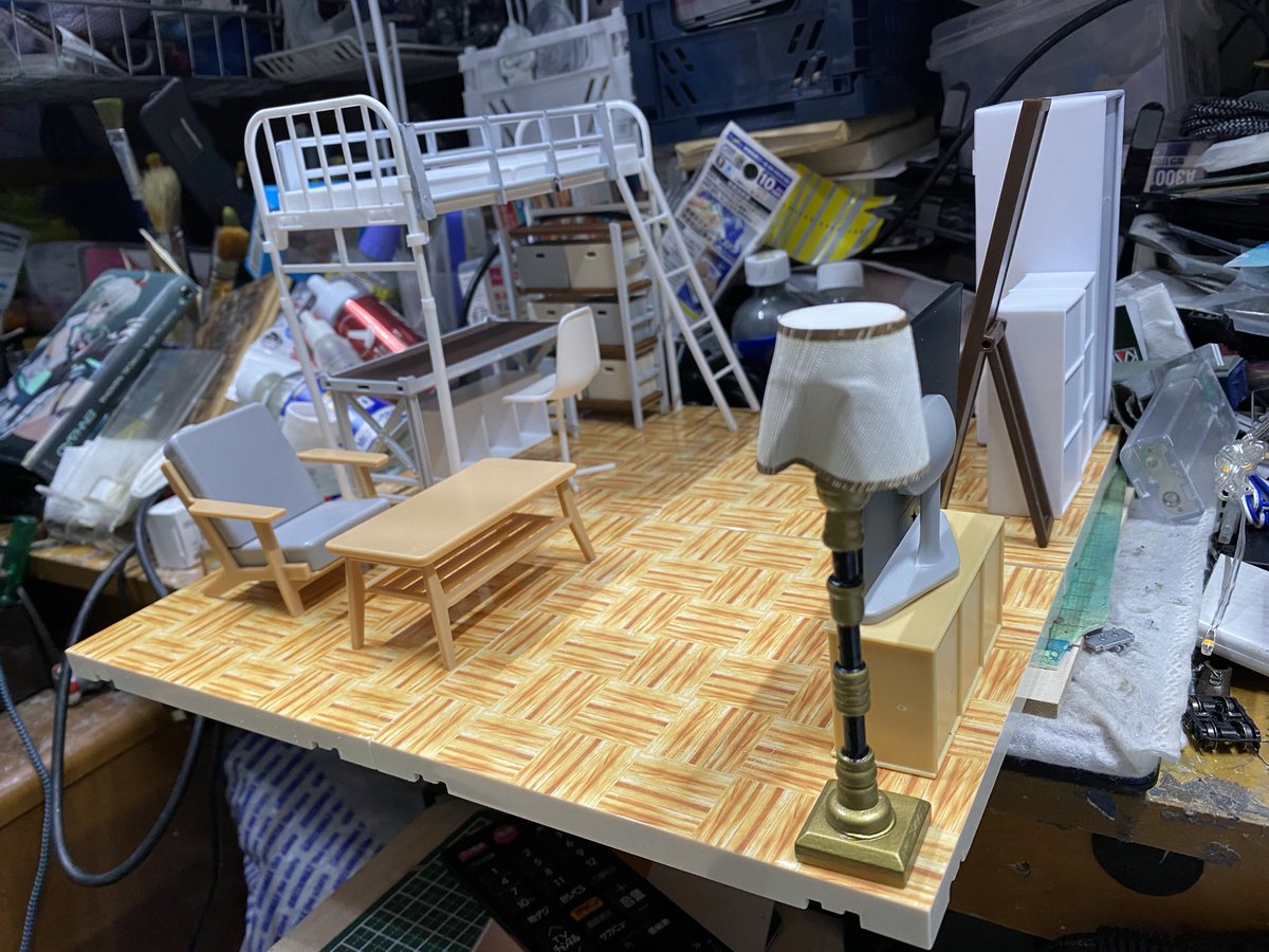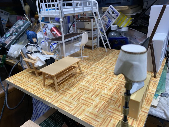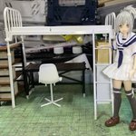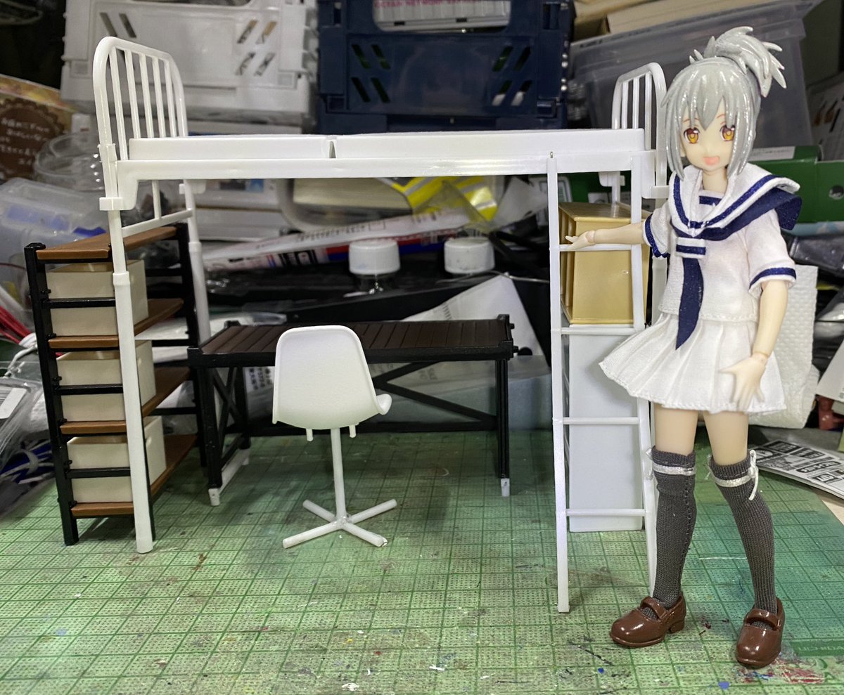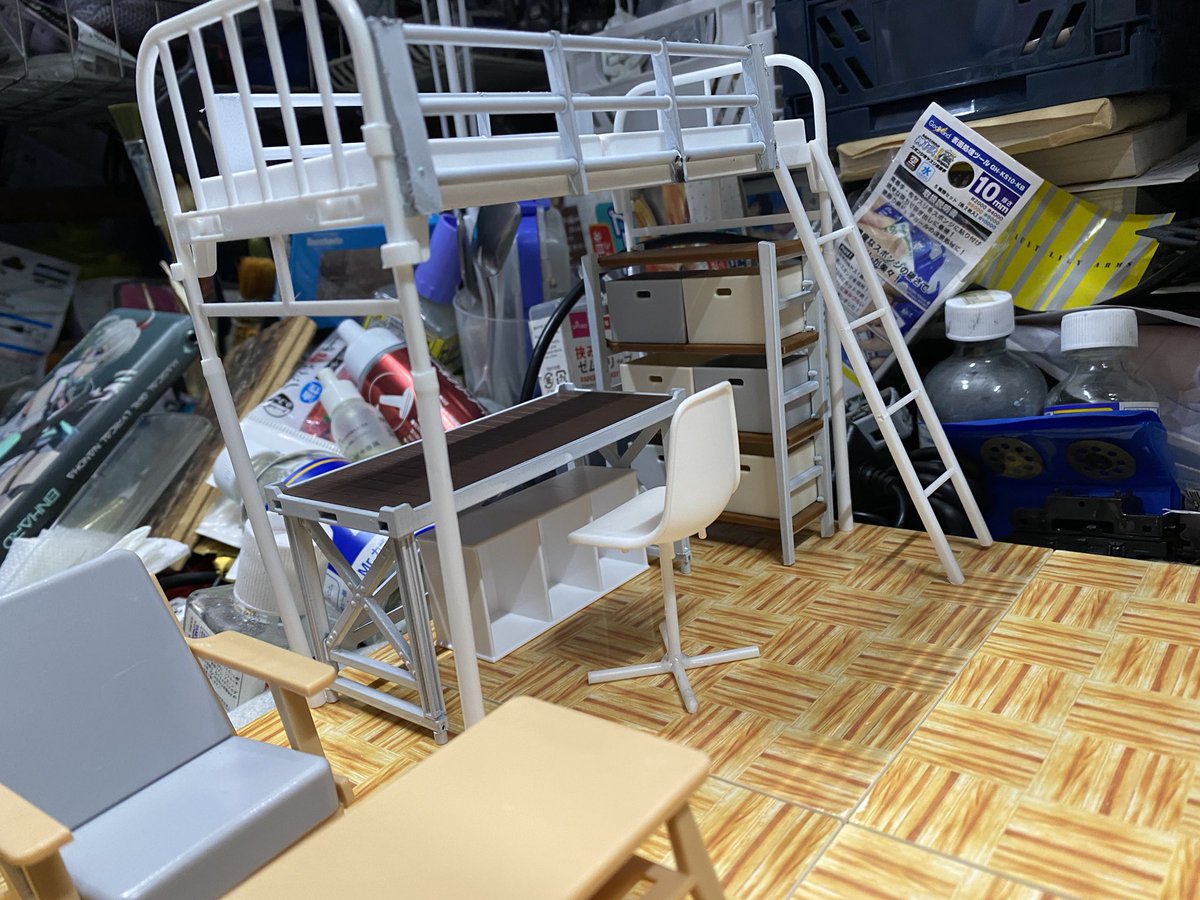 また別の生徒の部屋を… ベッド側の配置とテレビ台を3段ラックを横にして本棚風にして使用している様子… #山田化学 #アサルトリリィ #アサルトリリィドール部 #カスタムリリィ #オリジナルガーデン