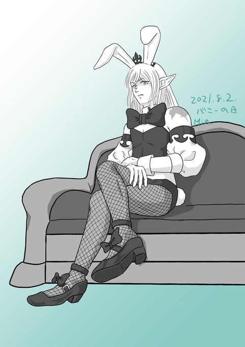 16 33 バニーの日とのことでTLが賑やかになっていたので、ここはひとつバニーなエスティニアンを描いてみましたというか網タイツに気合いを入れましたというか。 21/08/02 23:34
