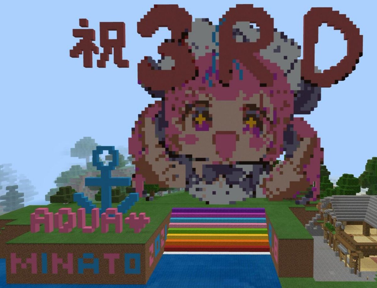 あくあクルーの友達と一緒に @Radium42085074 @_NEEEEEEEEKO あくあちゃんのアイコンをマイクラに作りました⚓️💕 andみんなからの応援メセナ♪ (クリエイターモードです) #あくあーと