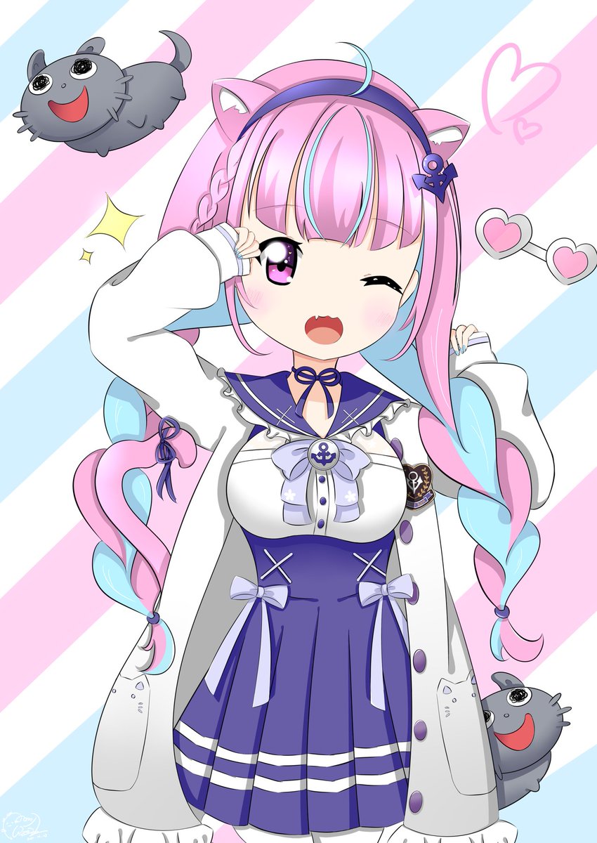 「こんあくにゃ~ฅ(*°ω°*ฅ)*」 「ドヤ!(。 ー`ωー´)」 …… (ネコミミまじかわいい最高…😇🙏 #あくあーと #湊あくあ新衣装