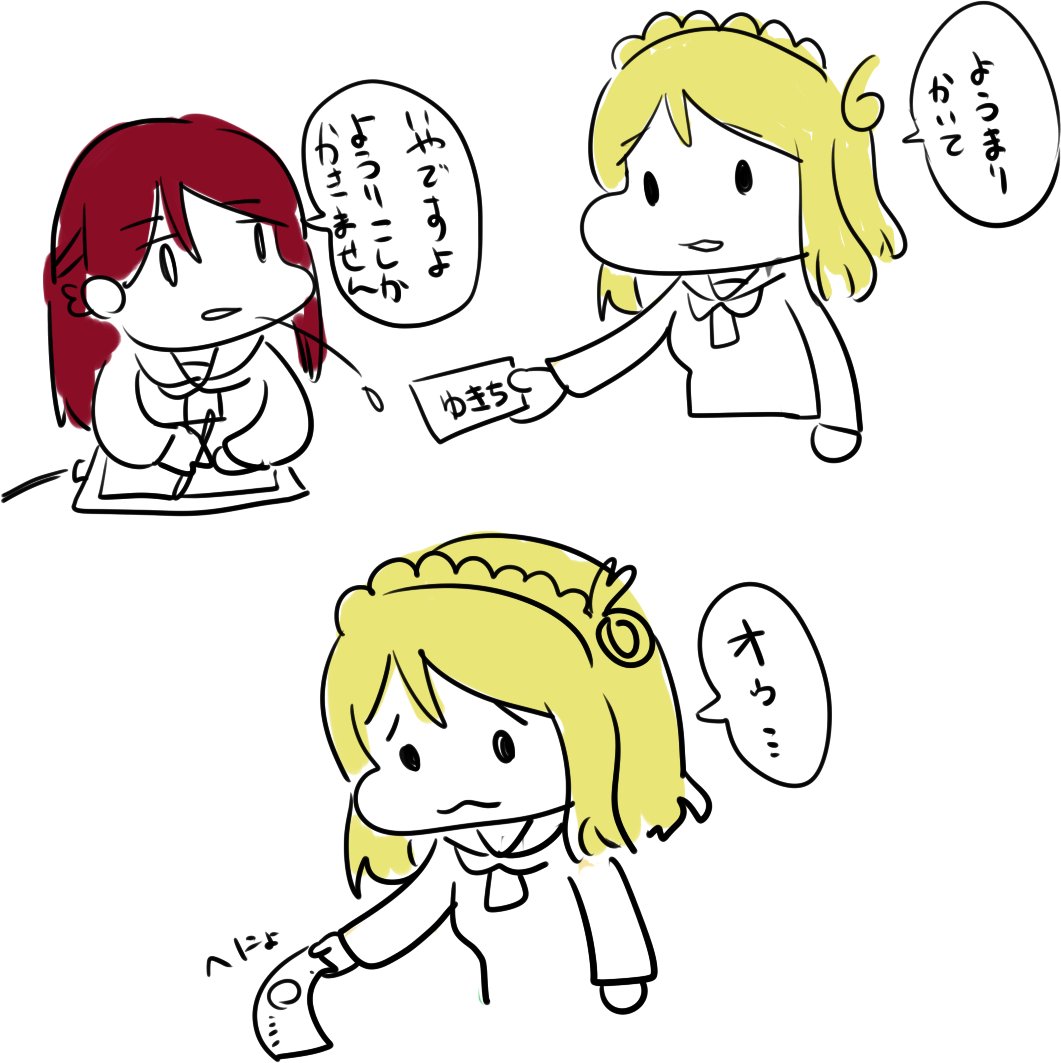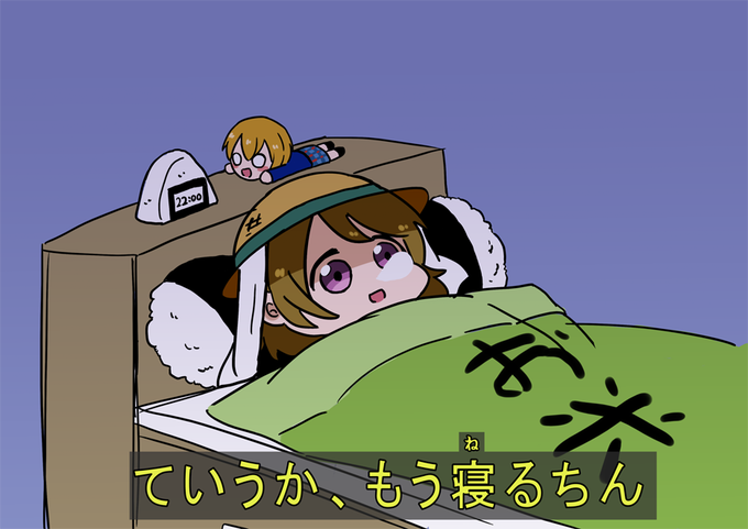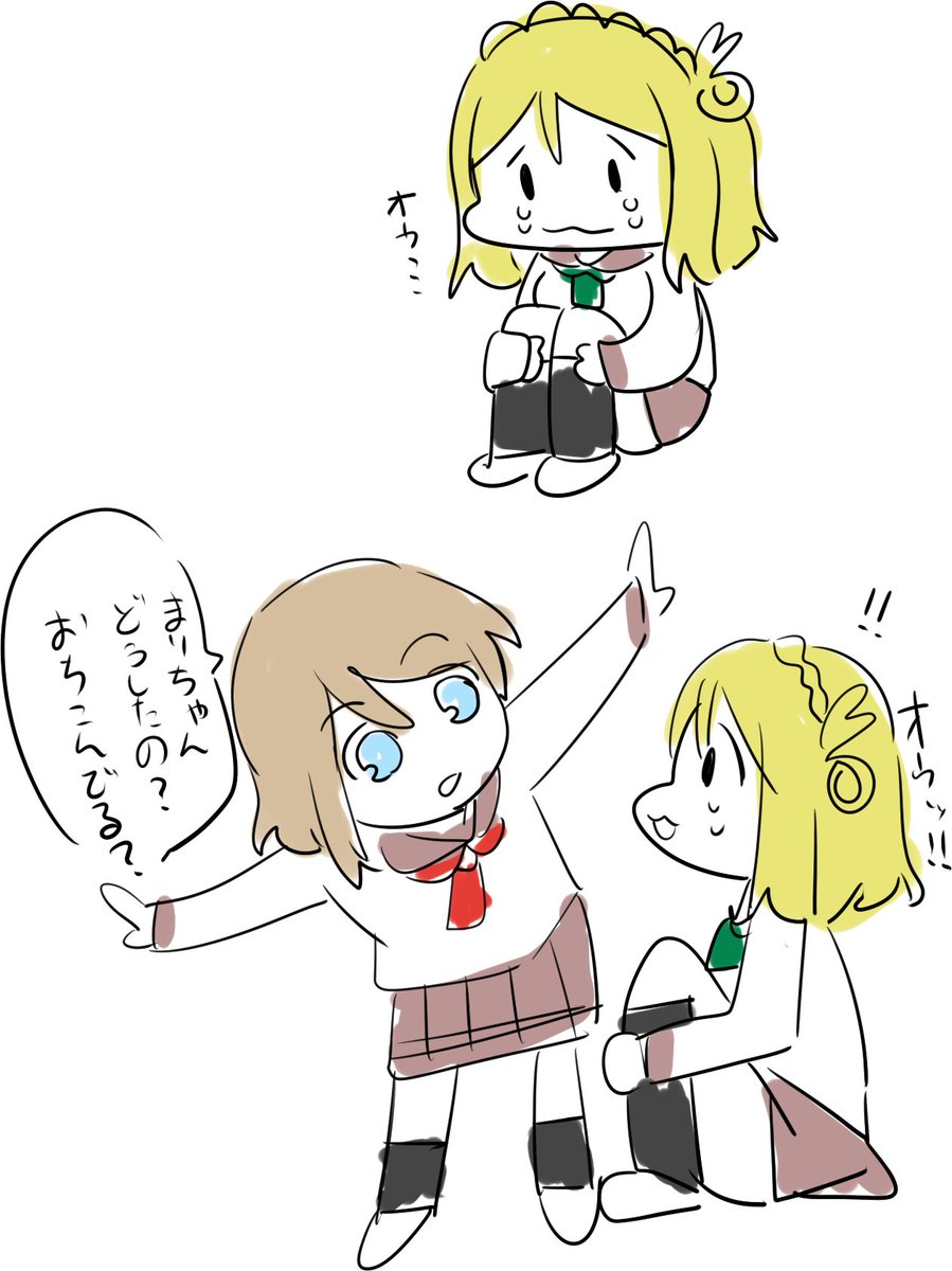 ヘアピン無いし顔赤いからこれお風呂上りにTwitter見ながら絵日記描いてる途中の委員長なのか…そして見上げるような視線の先には部屋に誰かがもう一人いるという事で……(