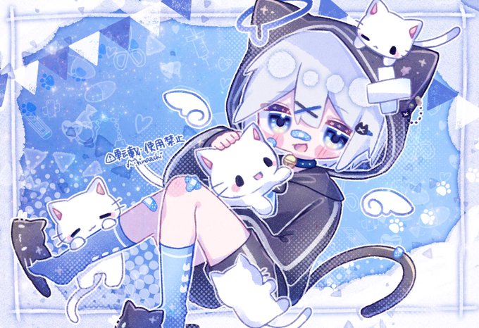 2 39 猫と戯れる猫耳パーカーくん!🐈💙 #イラスト #オリジナル #絵描きさんと繫がりたい 22/11/09 19:13