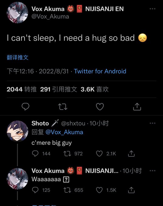 vox:i need a hug🥺🥺 shoto:come here😌 (委屈小盒想要抱抱🥺 互相支持的小情侣甜甜☺️☺️💗 #voxto #ArtoftheRogue #Akurylic