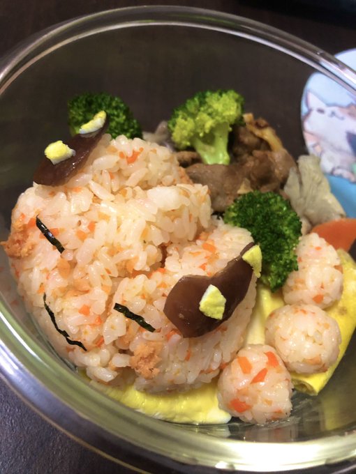 迫害三神本體-便當篇。 第三款:火神的日式便當 小彩蛋 1.炸蝦的聲音真的像淋浴 2.飯調色加了點仙(馬)人(奎)掌(爾)汁 3.某神脖子上摘下來的食材 去年的3D本體裂開時,我都想喊「陛下駕崩啦!」(右圖),今年做2D不會再翻車了......吧😃? #ArtforAsa
