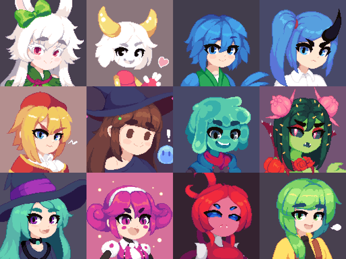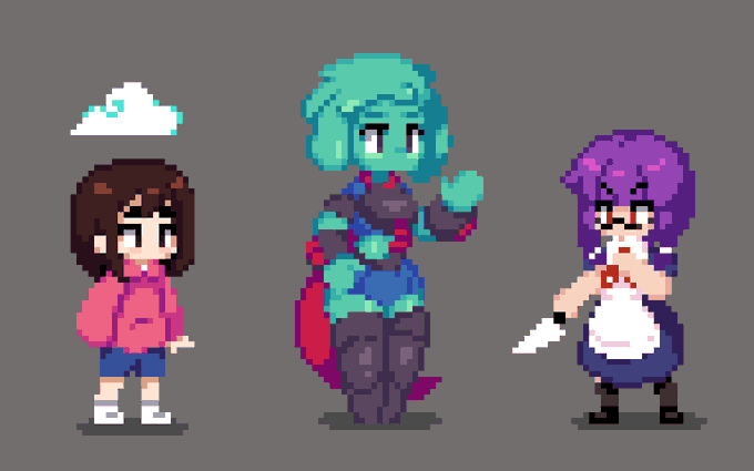 Drew some of my friendos characters in my games artstyle #pixelart #ドット絵 #aseprite