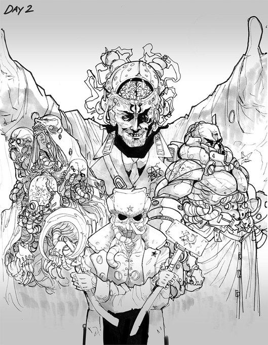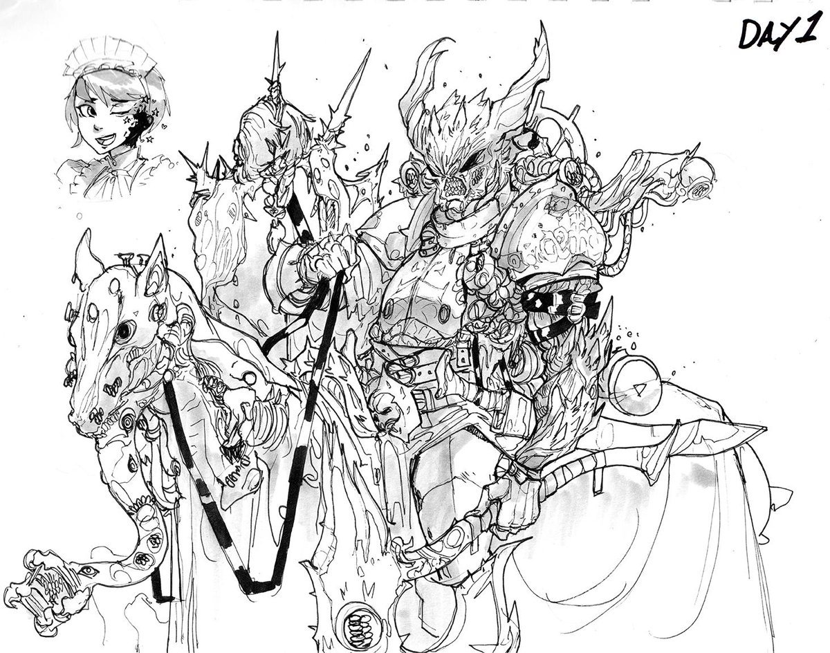 Day 1 Gore Knights, masters of warfare, disciples of pain and torment. These 8 foot tall, acid spitting cannibals roam Heaven's Curse in search of innocent flesh and potential neophytes.(but don't worry, your guide Gillian can handle them.) #inktober #Inktober2019