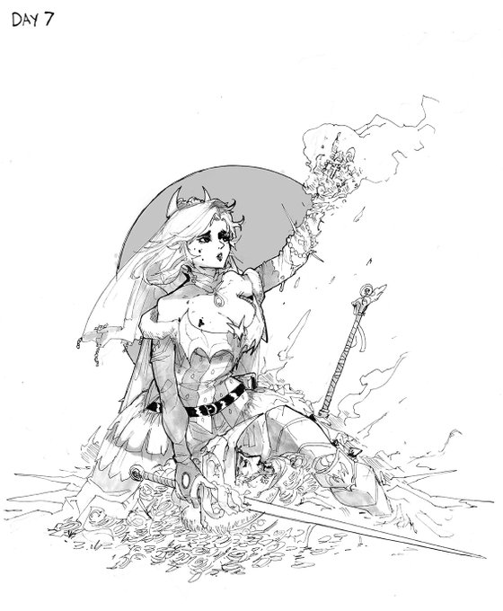 Day 7 The end of the 100 years Vampire Wars, the war wasn't won through brutal combat, but it was a miracle of love that saved the Empire. That's a bit to schmaltzy and hokey, but it's not wrong. I guess love can bloom in the battlefield, ha ah kill me... #inktober #inktoberDay7