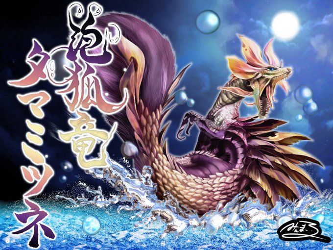 遂に完成!! 久々にめっちゃ気合入れたから褒めて❤️← モンスター描くのも水飛沫描くのも苦戦しまくり😂 文字は健ちゃん@dken9999にお願いしたらこんな素敵なの書いてもらっちゃった❤️✨感謝💕 #MonsterHunter #MHRise #モンスターハンター #モンハンライズ #モンハンイラスト #タマミツネ