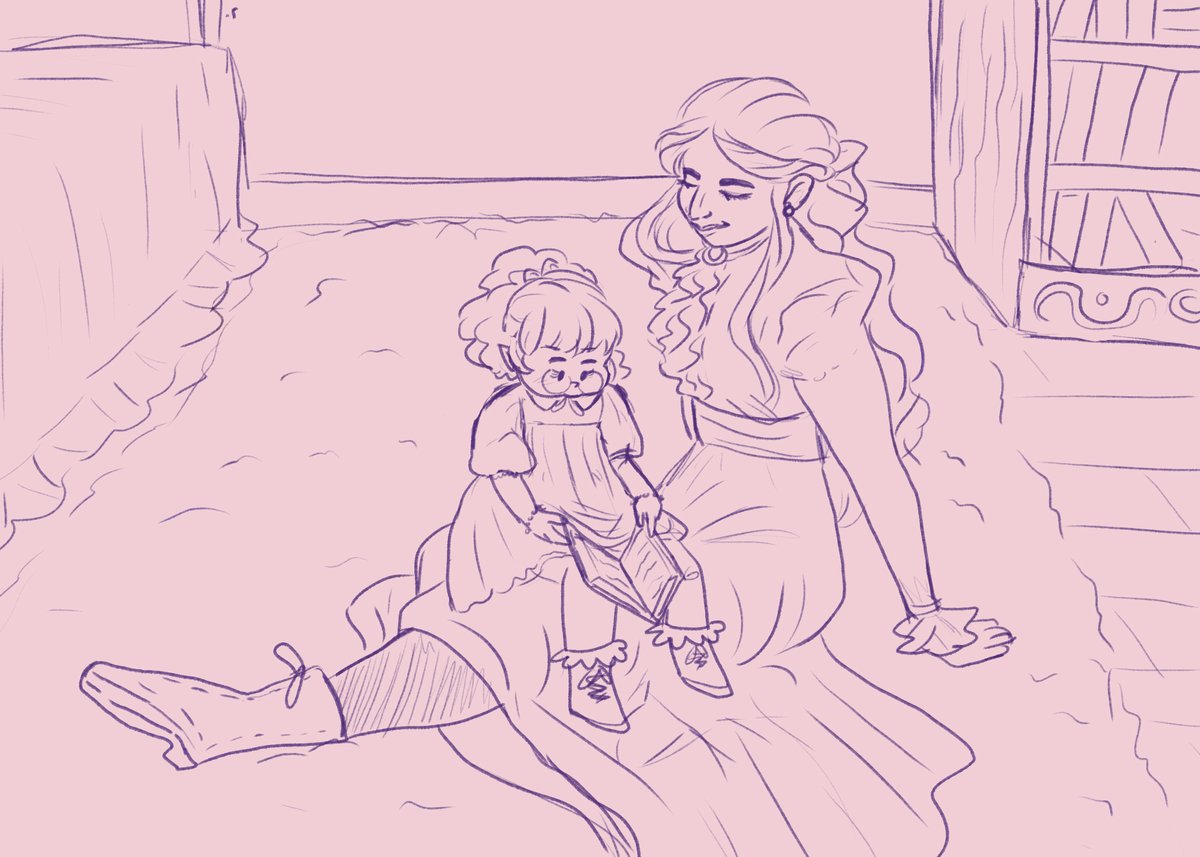a quick soft doodle of Vesper reading with her Auntie Cass <3 #CriticalRoleArt #criticalrolefanart #CriticalRole #fanart