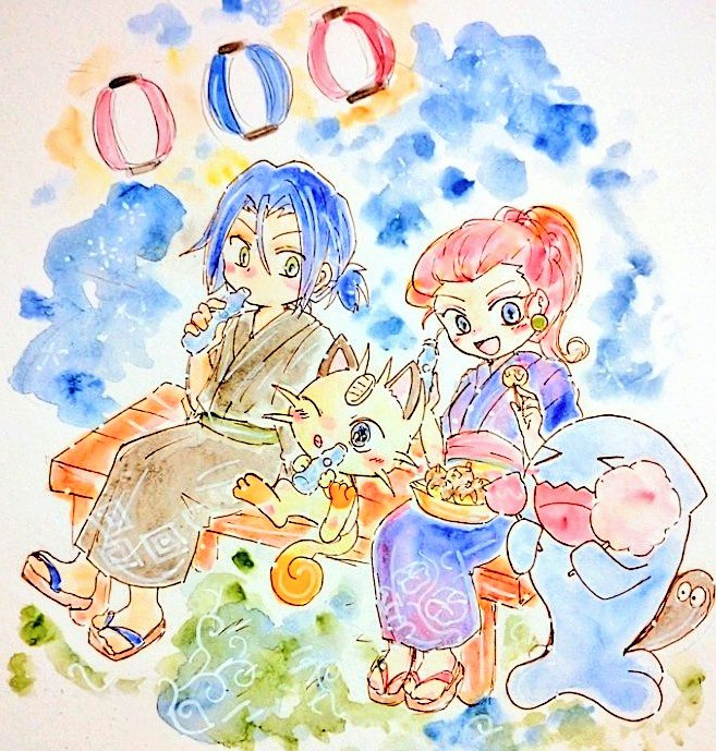 23 74 夏祭り🎆 ラムネのビー玉が気になるニャース🐱 #アニポケR団ワンドロライ 22/08/08 00:50