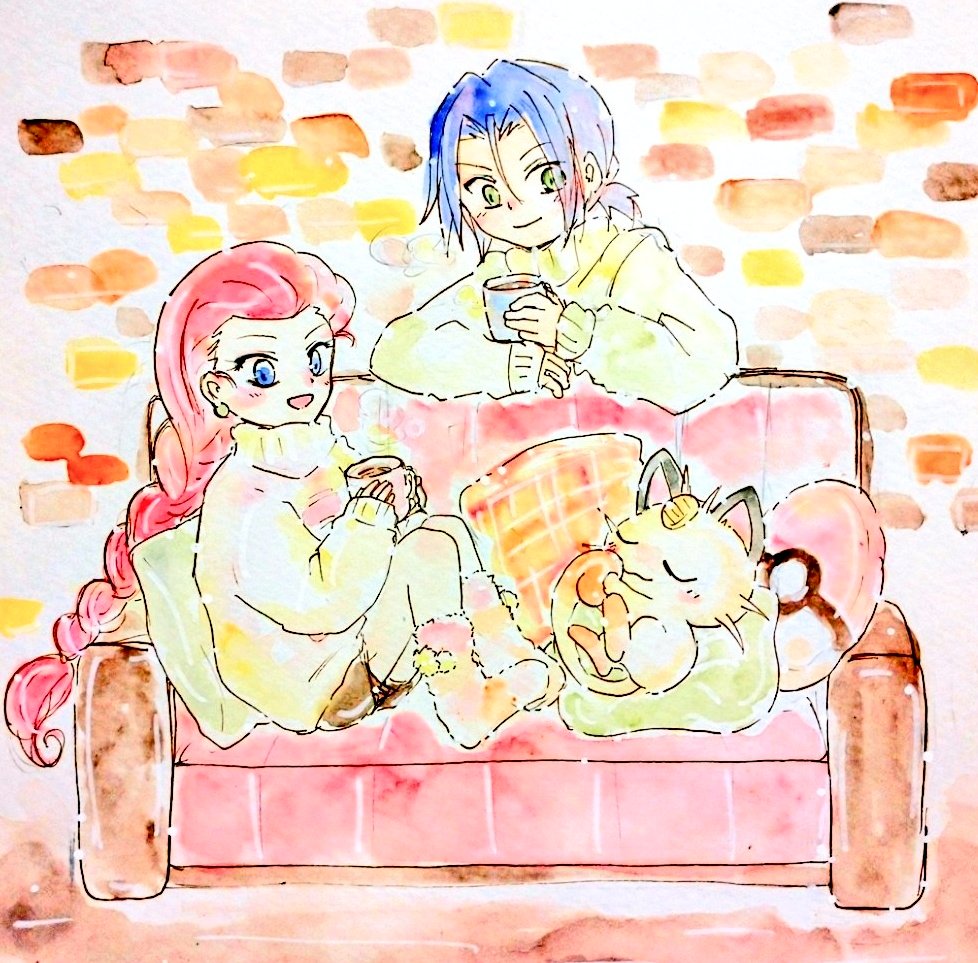 #アニポケR団ワンドロライ 「リラックス🌿」 ほっと一息☕