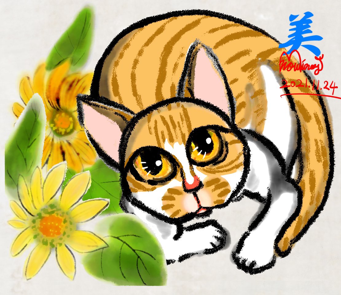 なんか段々、現実にいない猫を描きたくなってきた。 #猫好きさんと繋がりたい #猫 #cat #イラスト #お絵描き好きな人と繋がりたい #AdobeFresco #藤 #デジタル水墨画 #水墨画