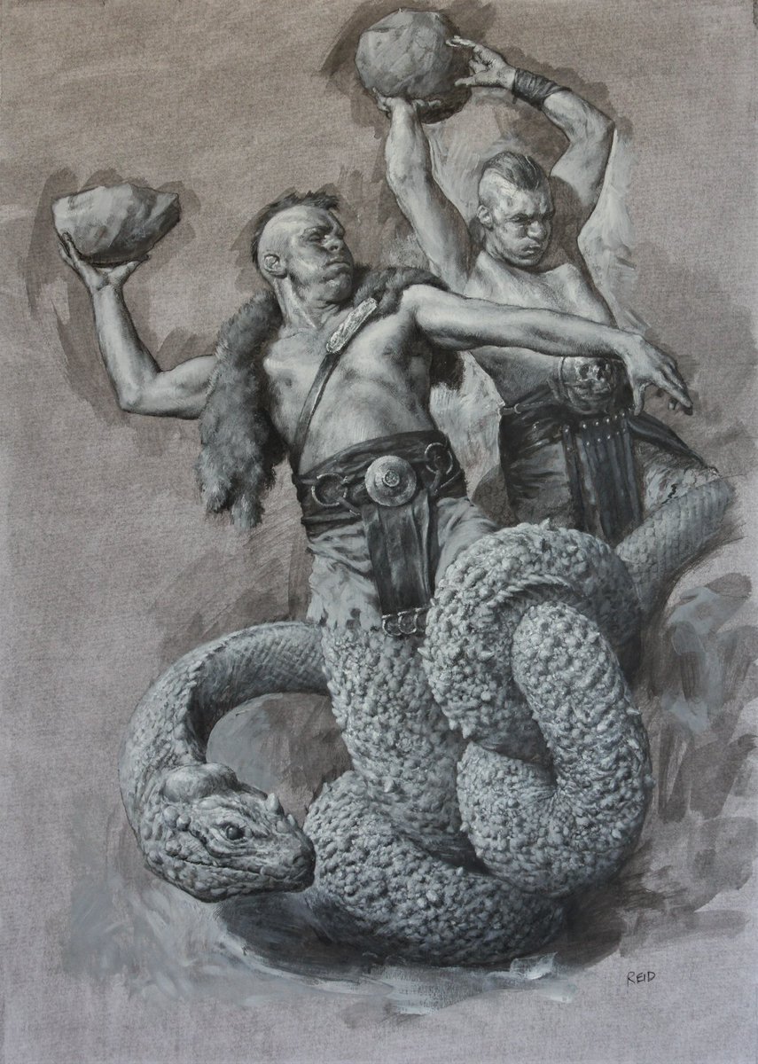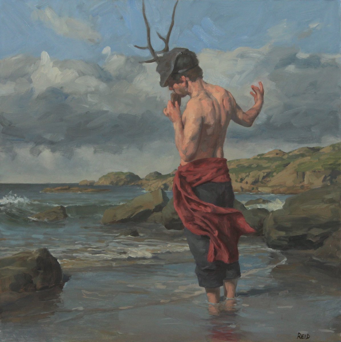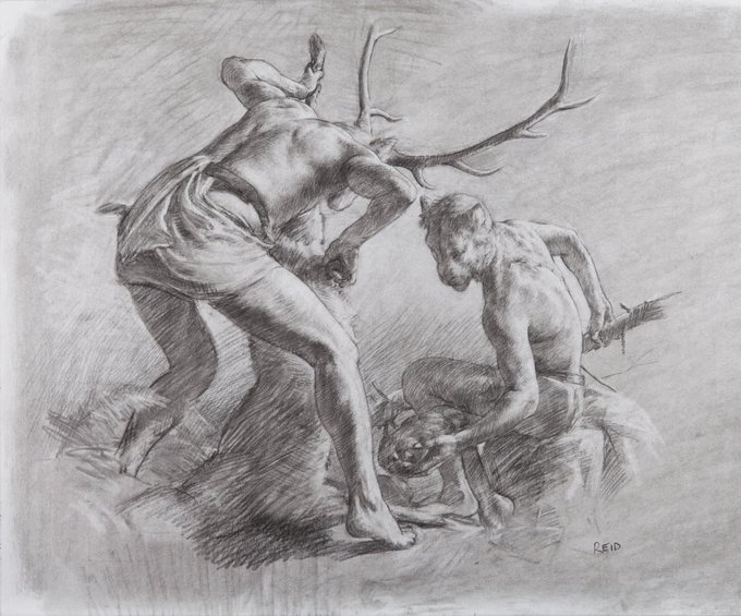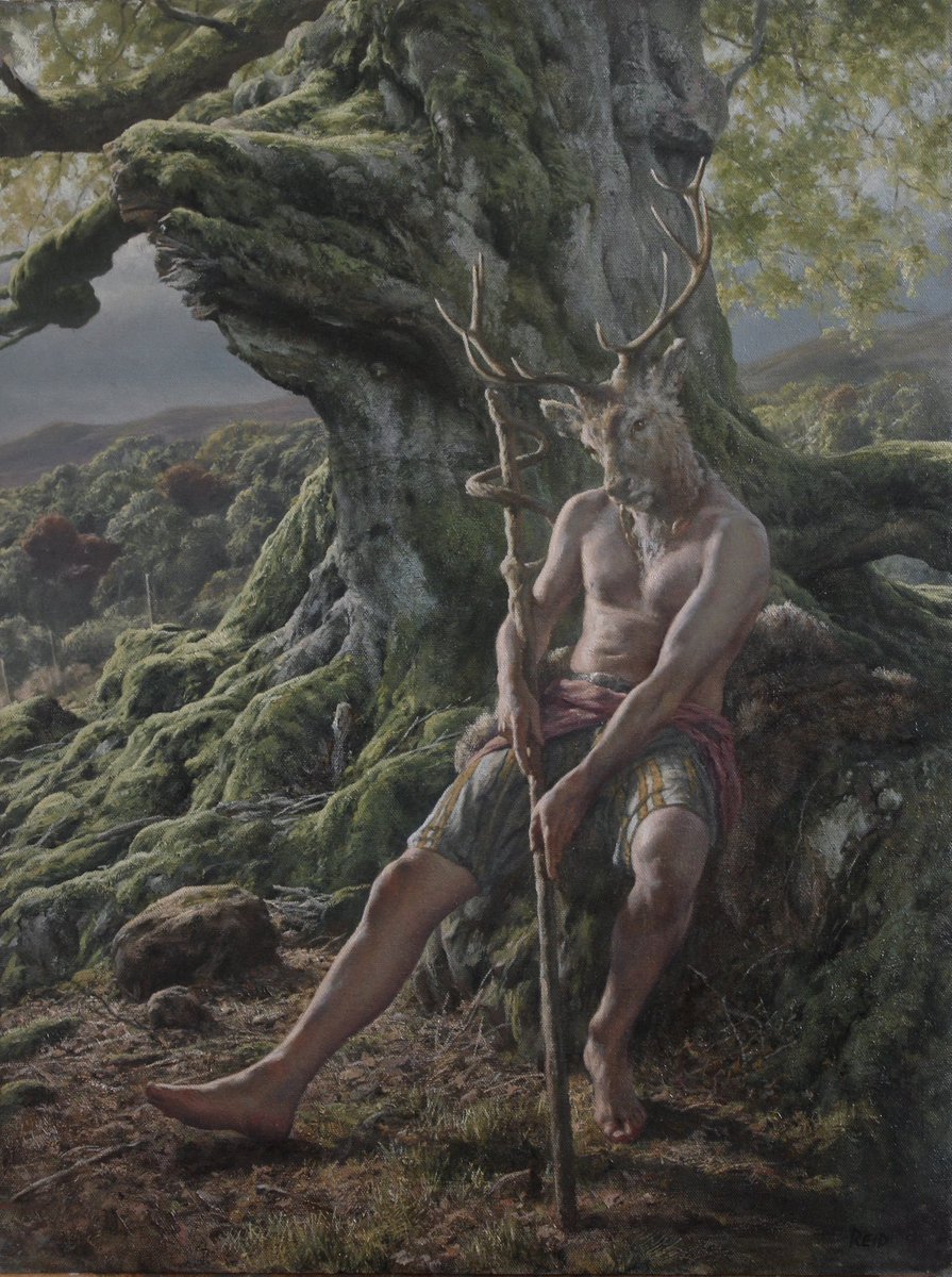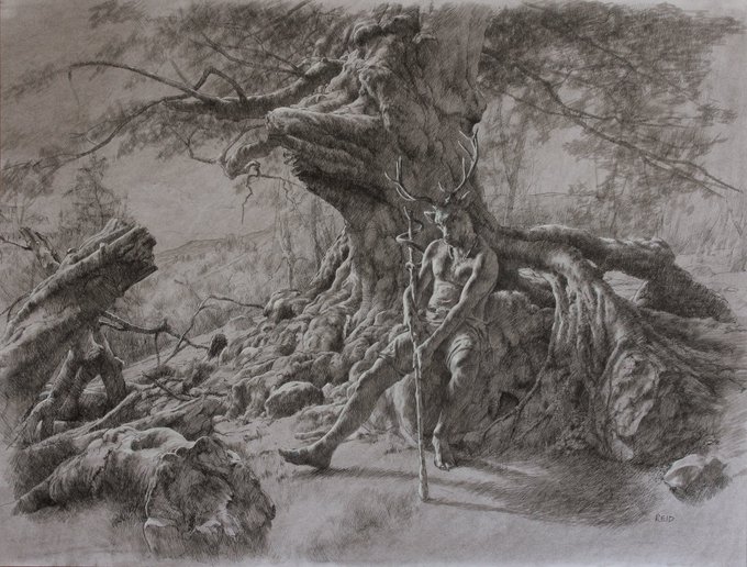 GM! Evolution of an idea. ‘Cernunnos’. Charcoal & ink study, Oil paint study, WIP, Final Oil painting.