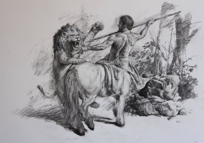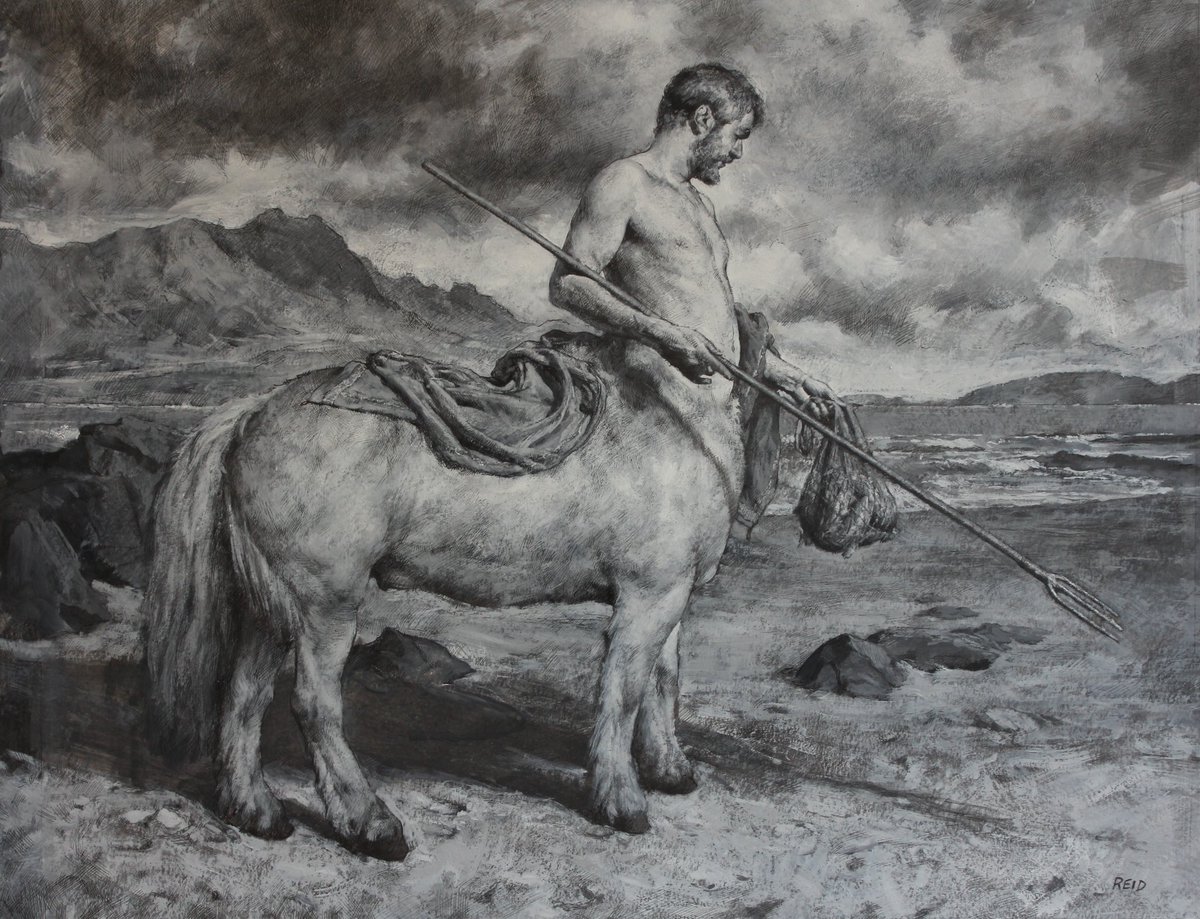 GM!! Some B&W centaurs. Acrylics, inks and charcoal.