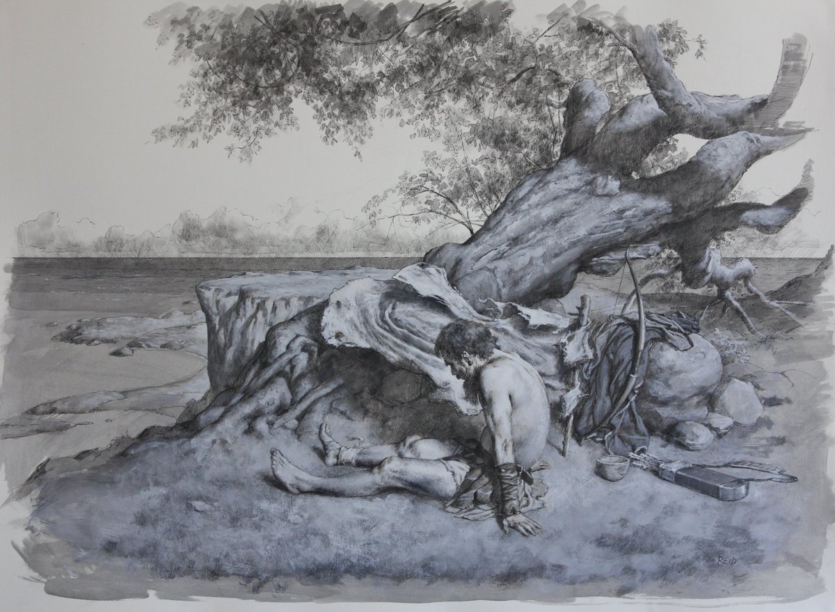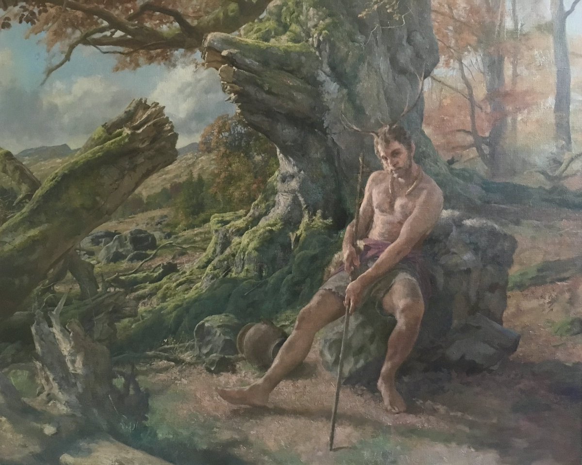 124 738 GM! Evolution of an idea. ‘Cernunnos’. Charcoal & ink study, Oil paint study, WIP, Final Oil painting. 23/08/18 18:01