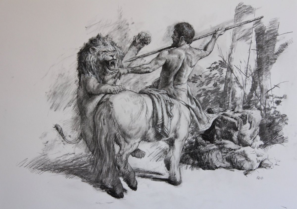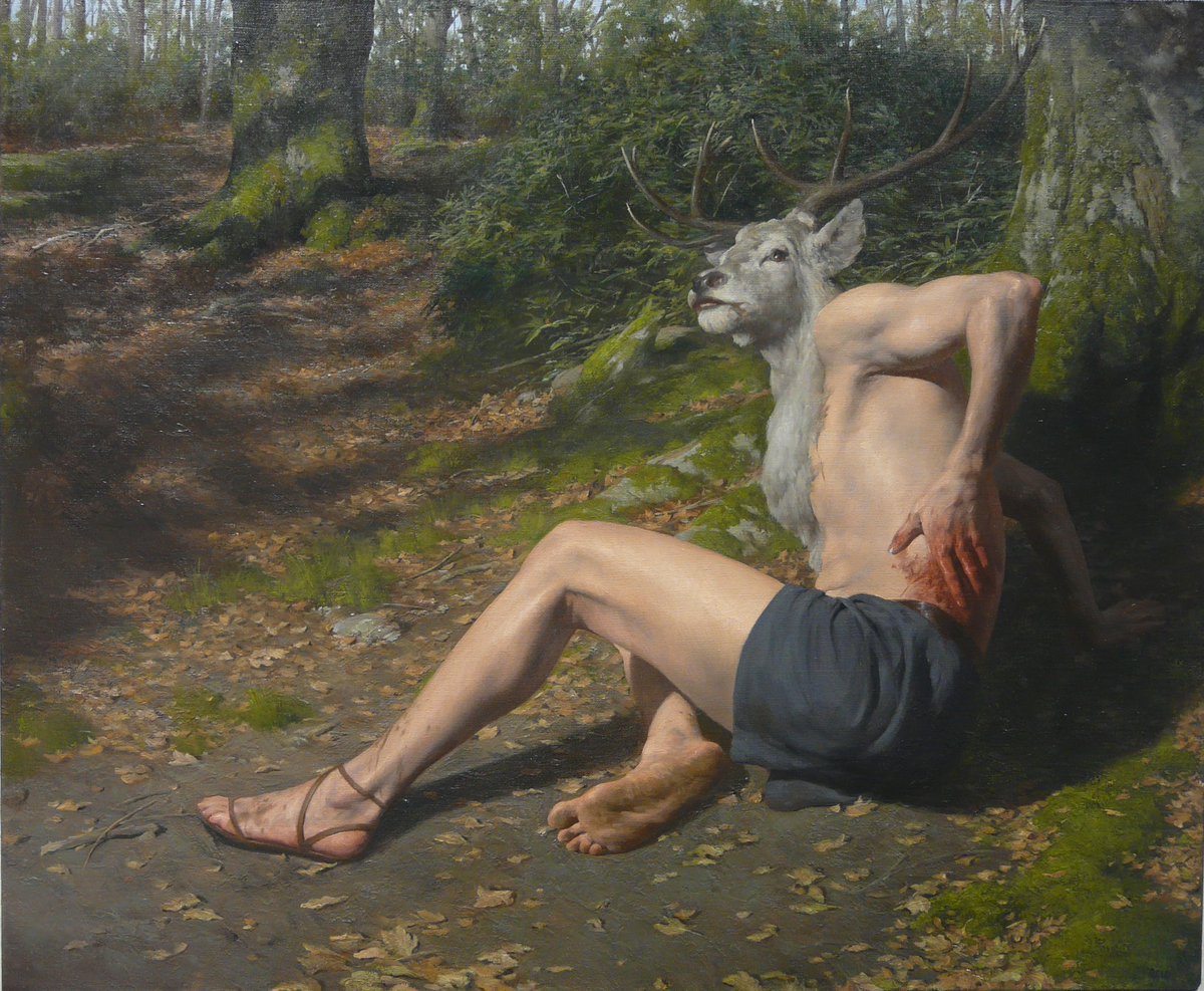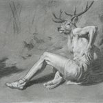 111 657 GM! Evolution of an idea. ‘Death of Actaeon’. Charcoal sketch, oil paintings (Actaeon and Pan), digital painting combining both. 23/08/16 19:37