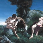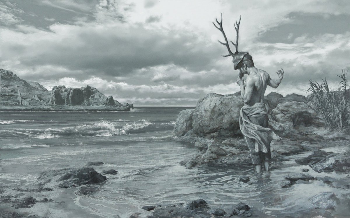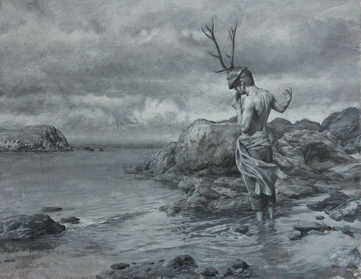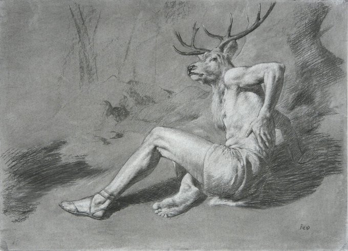 GM! Evolution of an idea. ‘Death of Actaeon’. Charcoal sketch, oil paintings (Actaeon and Pan), digital painting combining both.