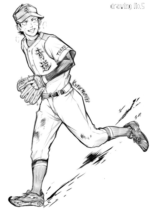 真剣に野球してる 絵を描くの本当楽しい もっちゃんおめでとう🎉