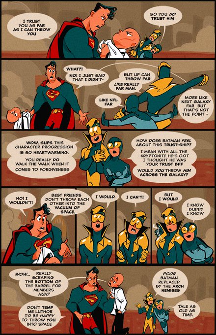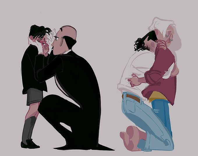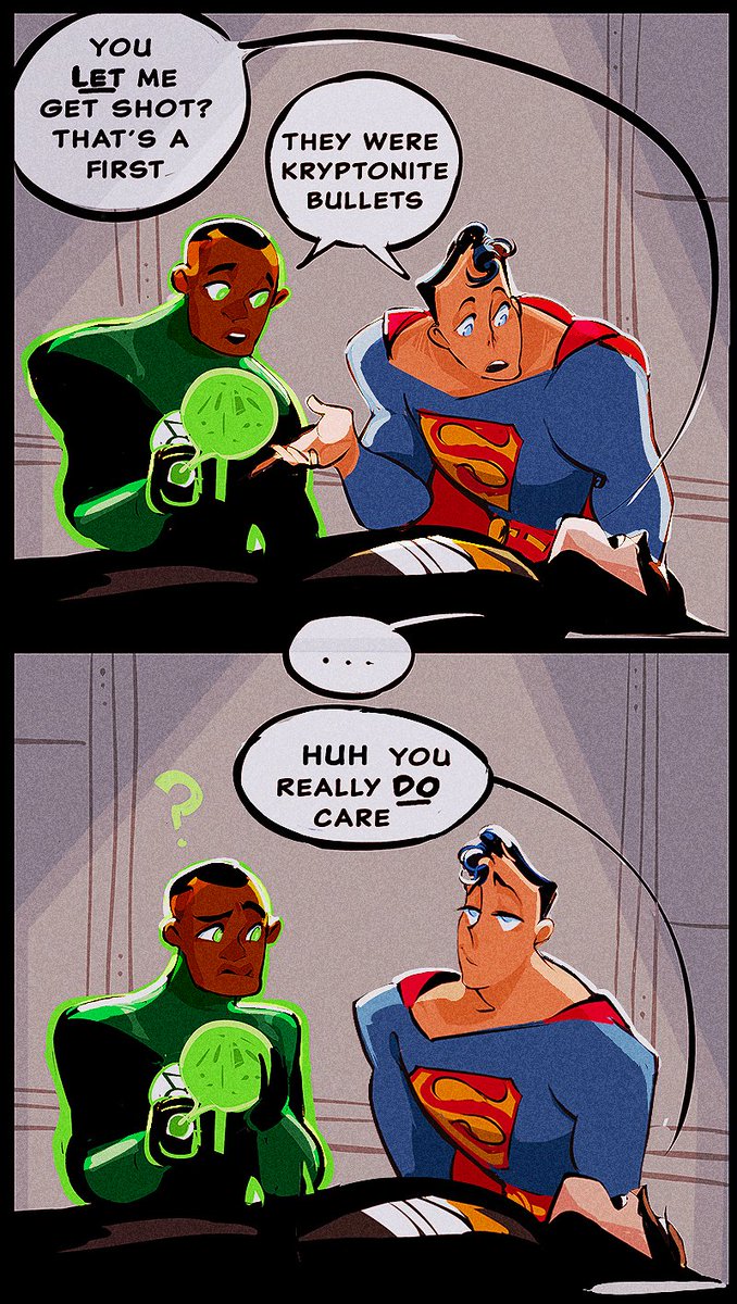 I had a dream last night about Damian trying over and over to kill Clark (I can't remember why) and every time he got close Kara would superspeed as a kryptonian body shield blocking him. I thought It was cute so I doodled it.#Superman #Supergirl #DamianWayne #dccomics