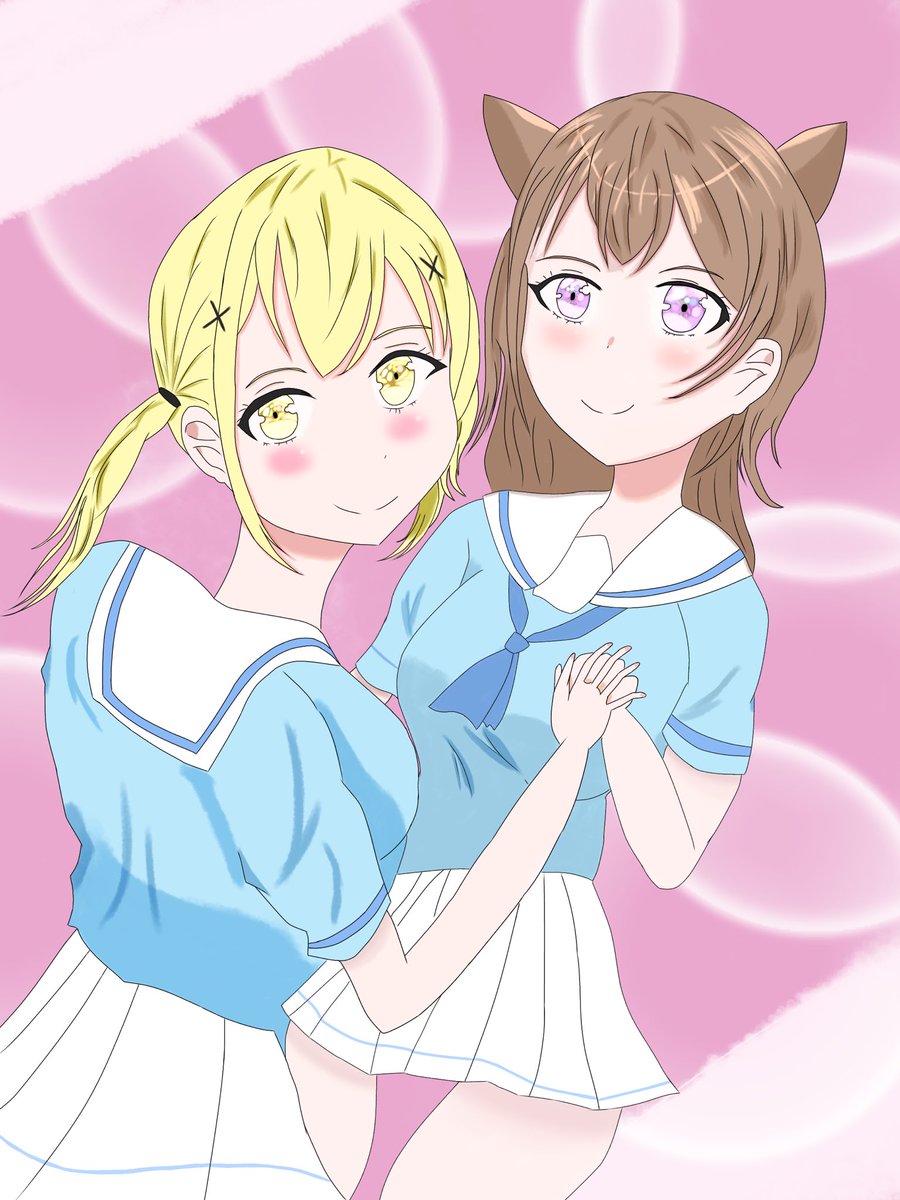 #今月描いた絵を晒そう ガルパ5周年イラストと相互さんの子描きました♪ 来月から本格的に画力向上目指したいです。