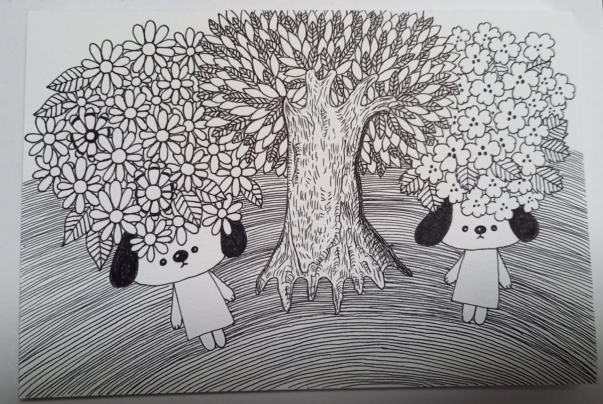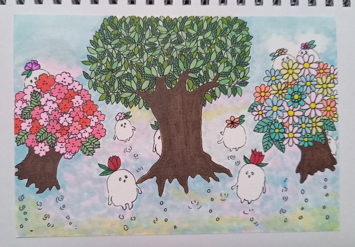 木と葉っぱが描きたくて描いたらなんかよくわからない絵になりました🤣 #アナログ絵 #イラスト