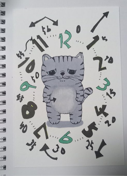 27 315 猫時計 何時?? #アナログ絵 #イラスト 23/02/19 13:11