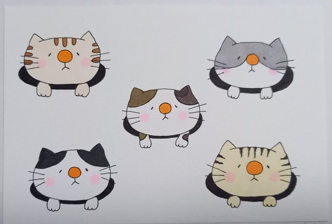 18 152 2月22日の猫の日に出遅れてしまった猫ちゃんたち🤣 #アナログ絵 #ゆるい絵 23/02/24 21:05