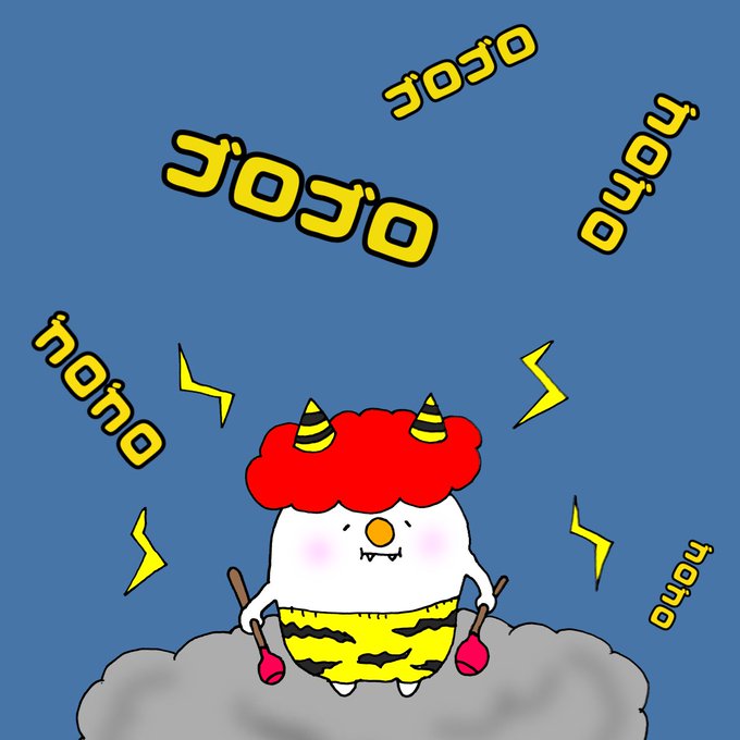 おはようございます☀️ キンキラキン~金曜日✨ さぁー今日も1日ボチボチっと頑張りましょう(o´∀`)o🎵 娘の描いたちいかわちゃんの栗まんじゅう雷様です🧡 #娘イラスト