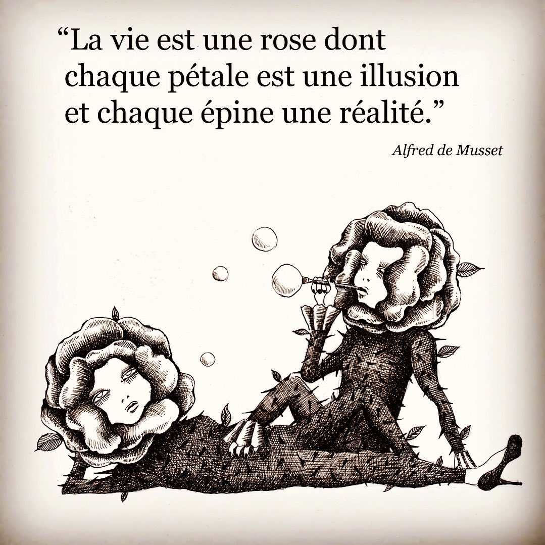 0 4 "人生は一輪の薔薇 花びらの一枚一枚は幻想、 棘が現実" こちらは辛口、アルフレッド・ミュッセおじさまのお言葉 #名言 #薔薇 #アルフレッド・ミュッセ #イラスト #ペン画 21/11/17 00:13