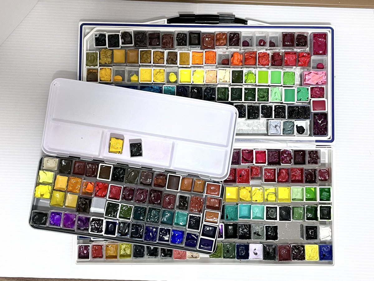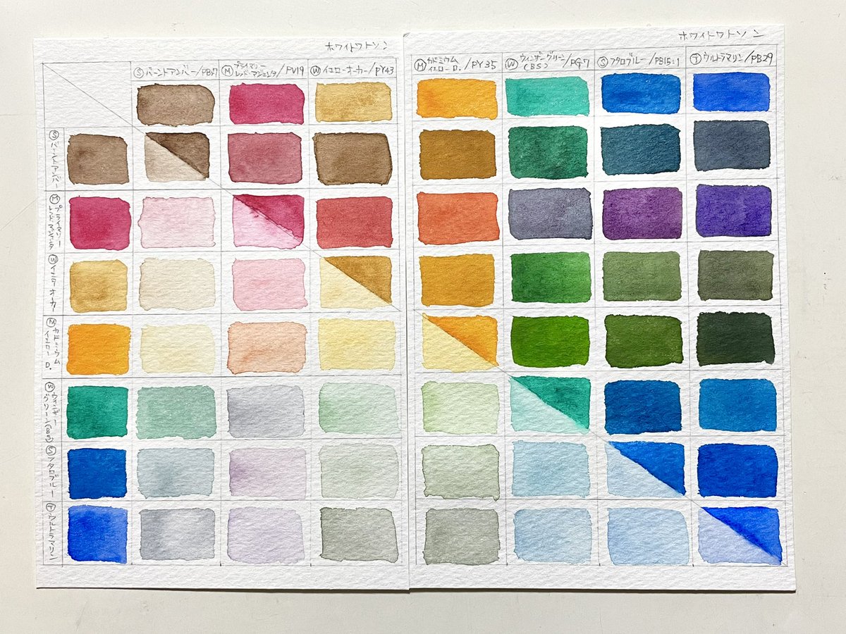 お絵描き垢じゃなく、絵具(できれば透明水彩)ガチ勢の方と繋がるにはどうしたら良いのか…🤔とりあえずタグ付けてみようかな。 透明水彩絵具で混色表や色見本を作るのが好きです。今年は絵具練りに挑戦したい! #画材研究タグ #絵具好きの方とつながりたい #水彩絵具を愛でる会