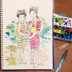 #今月描いた絵を晒そう 6月分のまとめです。少しずつ3色混色のものも増えてきました。7月もたくさんあそびます🕺🎨 (※1枚目の写真には5月末分も少し紛れ込んでいます) #色日記 #色あそび #watercolor #drawing #ホワイトワトソン紙 twitter.com/mio_n_draw/sta…