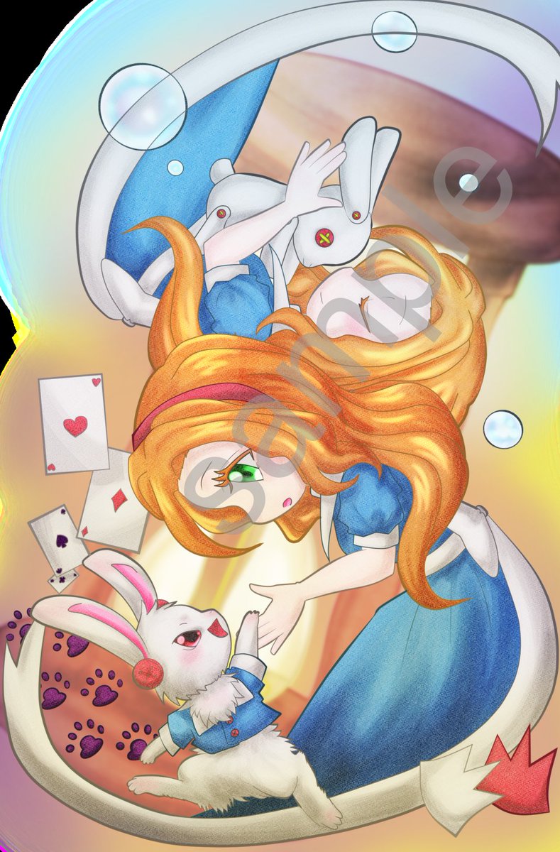 「もう一人のわたし」 不思議の国のアリスからオリジナルイラストです! 詳しくはないですが、とても魅力的な題でした! #イラスト