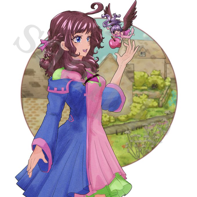 「妖精の国にようこそ🍎」 お友達の人間の女の子に妖精の国で1番美味しいりんごをプレゼント🍎 そんなイメージをしながらの一枚絵です✨ #イラスト