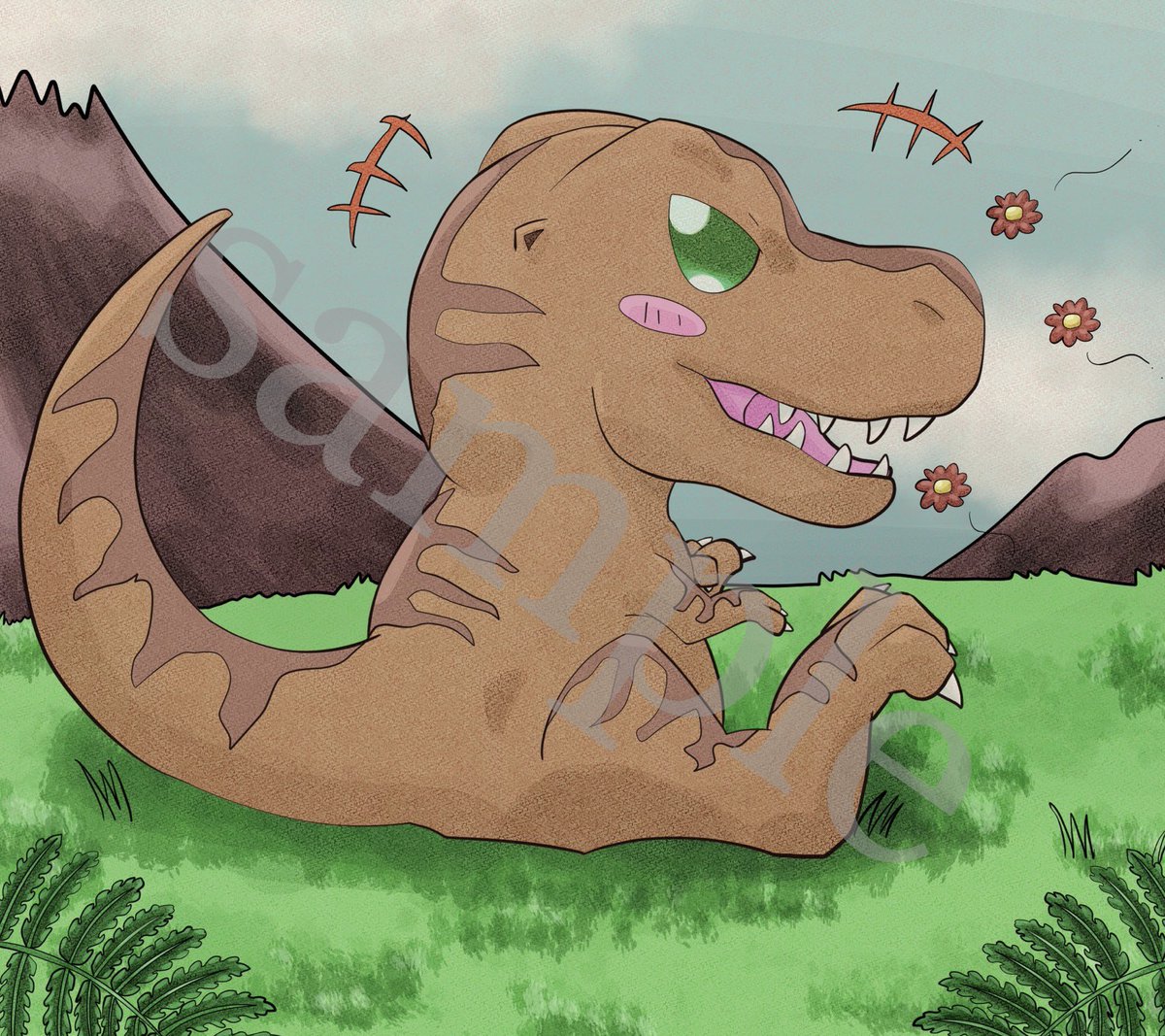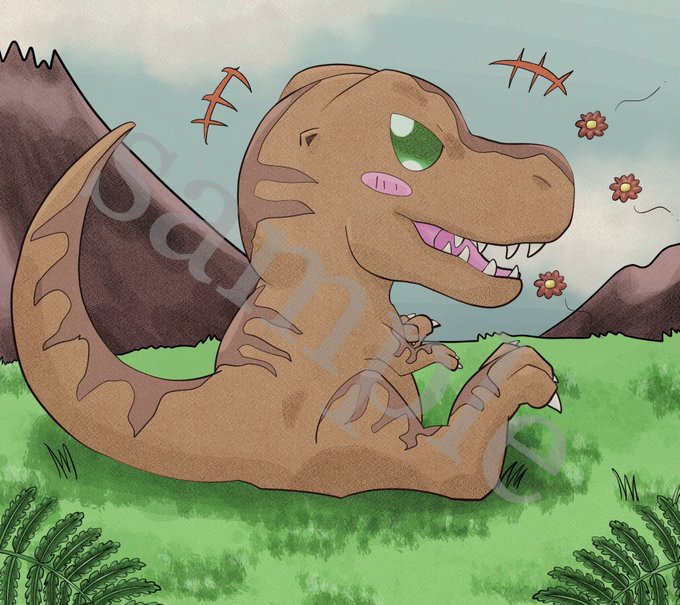 #恐竜の日 素敵なタグだ!! 恐竜好きなので嬉しい!! 前描いた、ちびティラノサウルスと、カラフルなスピノサウルス🦖