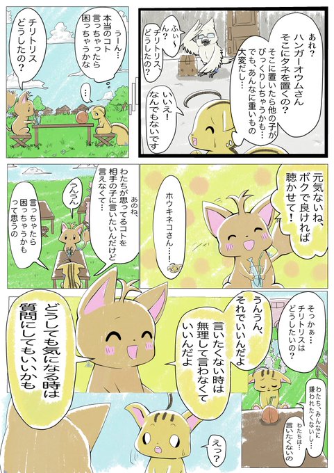 「ホウキネコ&チリトリス」 【第3話】 『それぞれの時間感覚』 優しい世界でも、みんなのことが好きだから、言いたいこと言えない繊細さんなチリトリス。そんな繊細さんなチリトリスにホウキネコが優しくしてくれます🌱 読んでいただければ嬉しいです! #漫画 #イラスト