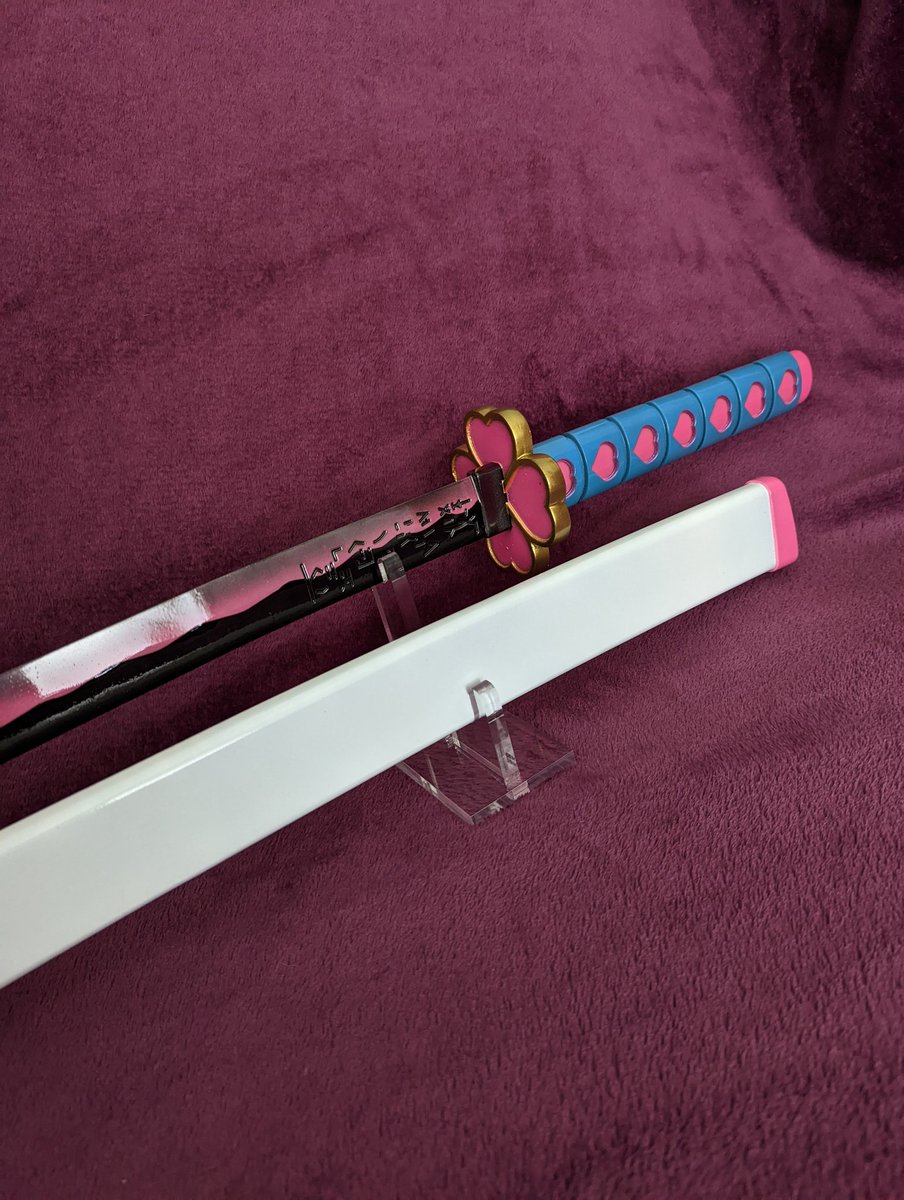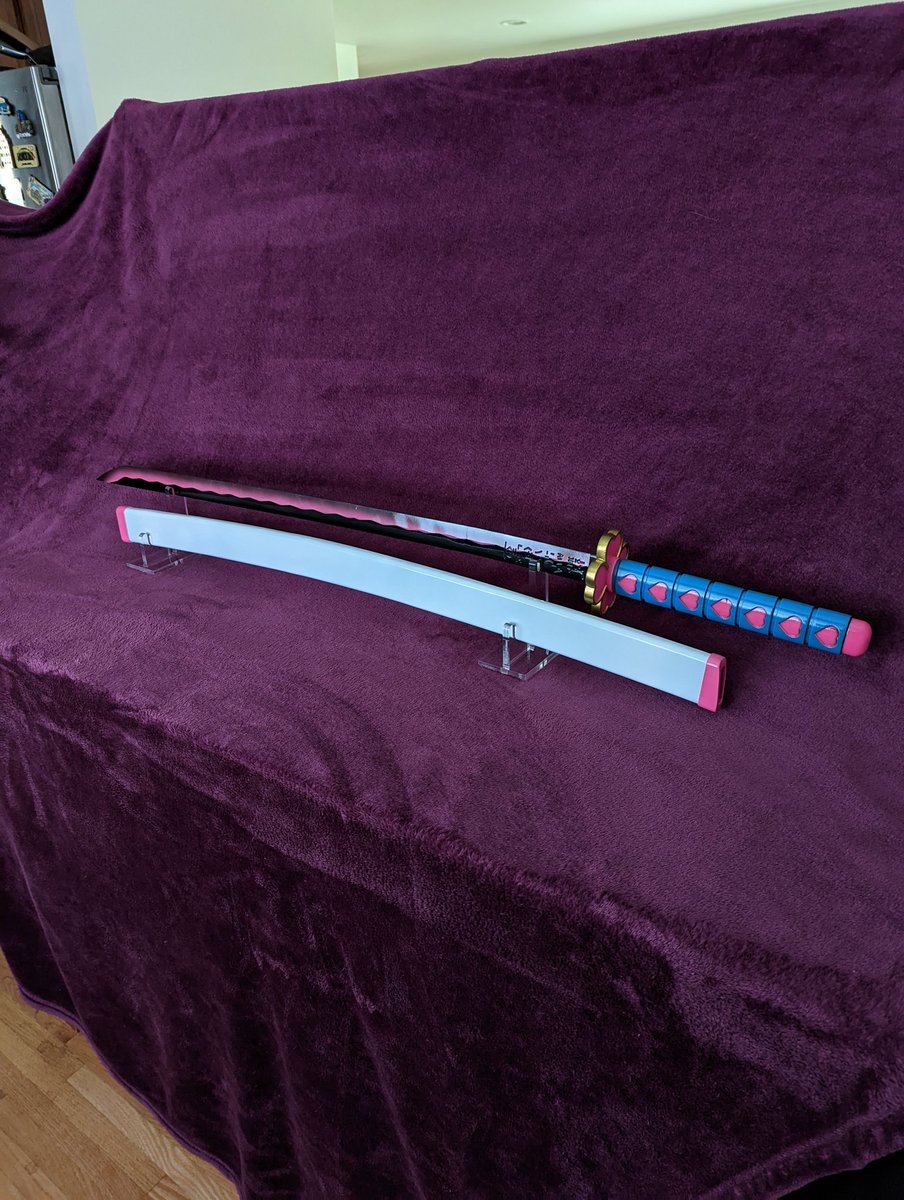2 10 Wrapped up a Mitsuri katana from #DemonSlayer last week! The masking was a pain but it turned out well in the end! #3dprinting #MitsuriKanroji #cosplay #anime #manga 22/06/28 01:56
