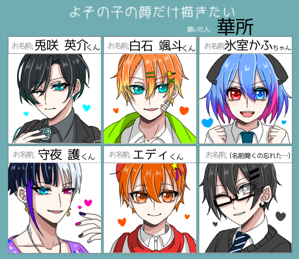 #よその子の顔だけ描きたい 描けたよフォロワー様ァ!!! まず6人!!!!!