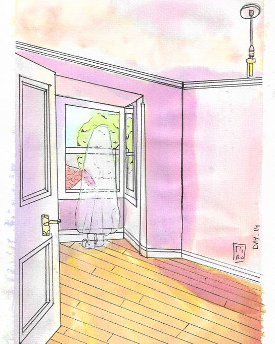 @inktober day 14 : EMPTY 🚪 tested a new masking tape and got dissapointed lol #drawing #traditionalart #inktober #inktober2022 #illustration #art #sketch #drawing #watercolor #spookymonth #empty #bedroom #ghost