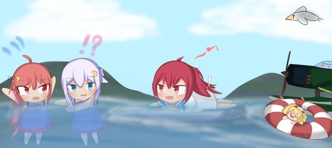 102 327 赤城さんと夏の海..."⊂( っ๑╹◡╹๑)っ"🍉 リクエストの水着赤城さんをちょっと変えて描いてみました 23/08/01 20:58