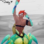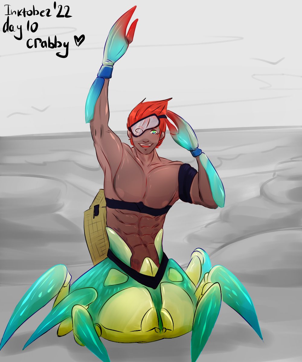 #inktober2022 day 10! I… i used body references for this one, I absolutely LOVE how this crab diver boy turned out~~~ #inktober #crab #monsterboy #art #digitalart #illustration