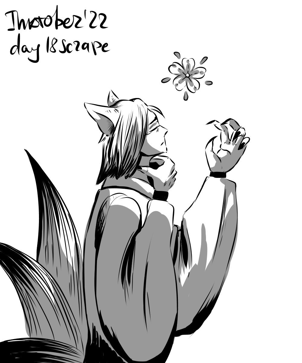 #inktober2022 day 18! This kitsune boy can scrape so much with those claws… #inktober #art #digitalart #sketch